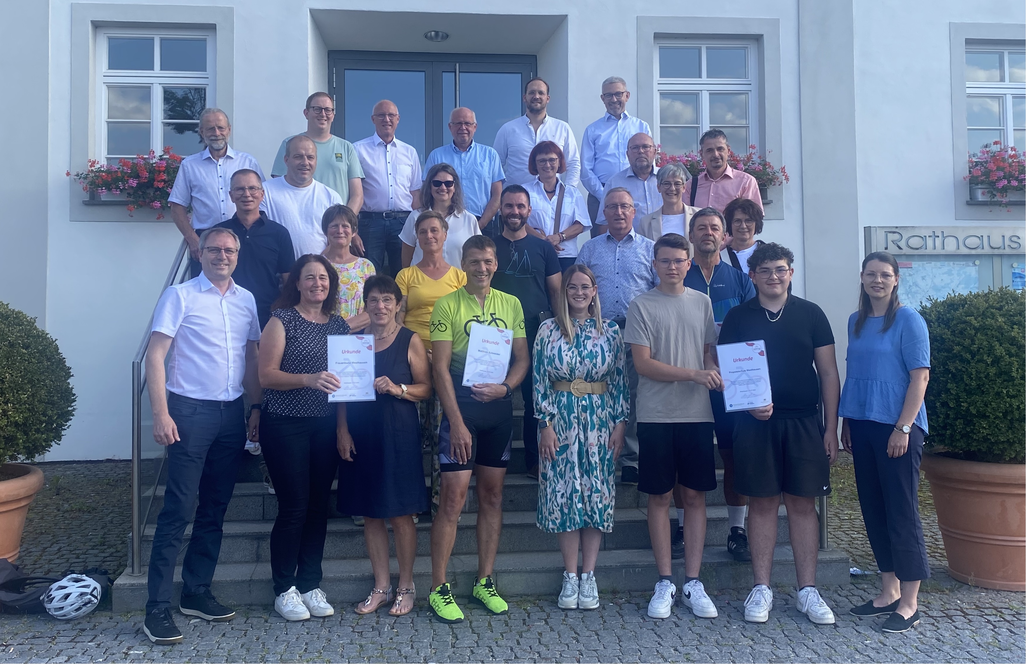 Bürgermeister Markus Knoblauch und Klimaschutzmanagerin Verena Heel freuten sich sehr über das bisher beste Ergebnis Westhausens beim dreiwöchigen STADTRADELN-Wettbewerb und dankten allen Beteiligten für ihr tolles Engagement. Sie beglückwünschten alle 11 Teams zu dem beeindruckenden Gesamtergebnis von 54.008 Radkilometern und rund 9 Tonnen vermiedenen CO2.